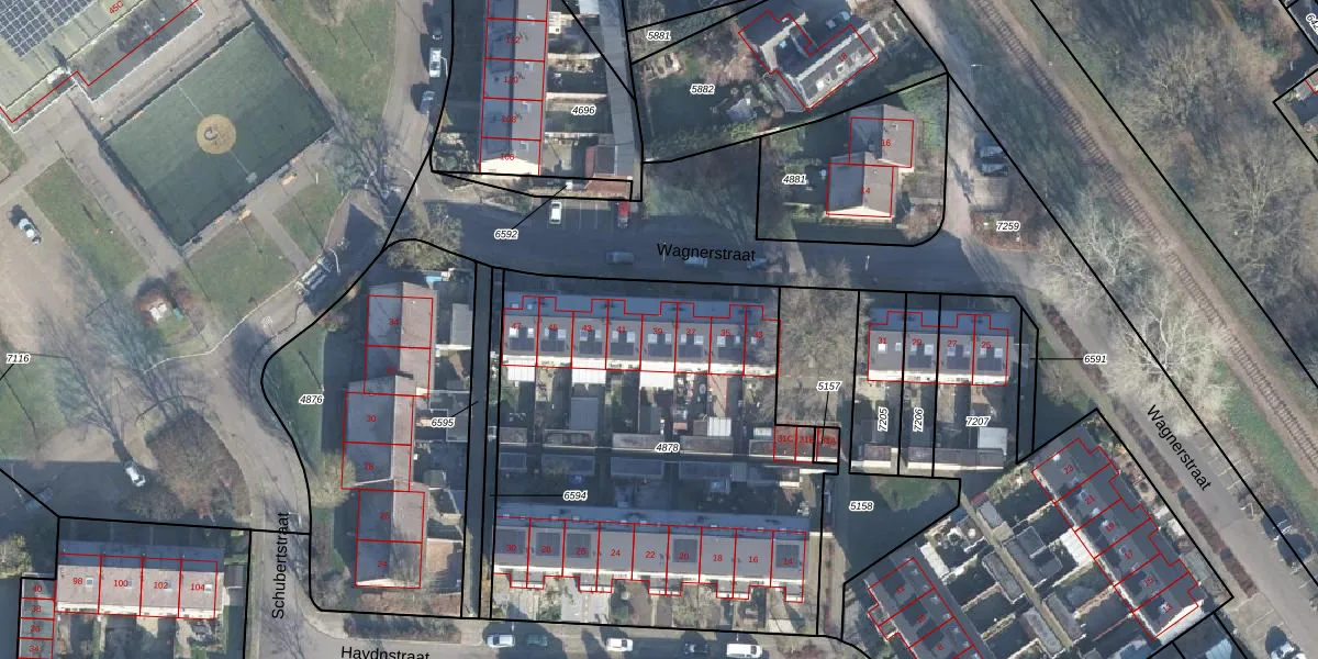 Het perceel waarop Wagnerstraat 39 staat heeft een oppervlakte van 2440 m². Dit is een zeer groot perceel. De perceeloppervlakte wordt geregistreerd door het Kadaster. Gedetailleerde informatie over de maten van dit perceel kunt u vinden in het rapport Kadastrale kaart met maatvoering van Wagnerstraat 39.