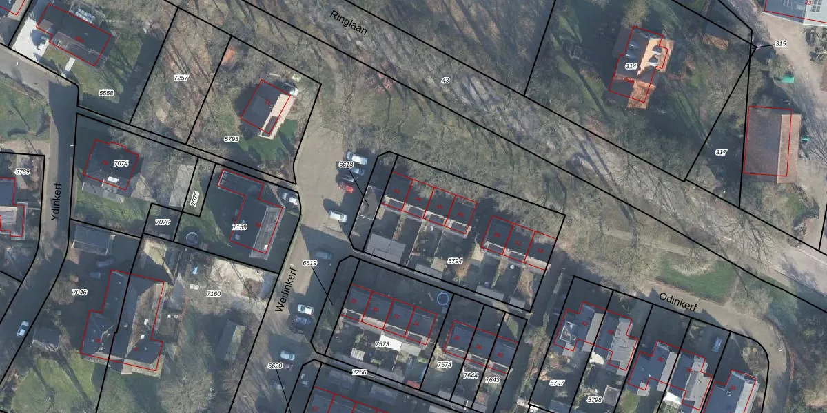 Het perceel waarop Wedinkerf 44 staat heeft een oppervlakte van 1073 m². Dit is een zeer groot perceel. De perceeloppervlakte wordt geregistreerd door het Kadaster. Gedetailleerde informatie over de maten van dit perceel kunt u vinden in het rapport Kadastrale kaart met maatvoering van Wedinkerf 44.