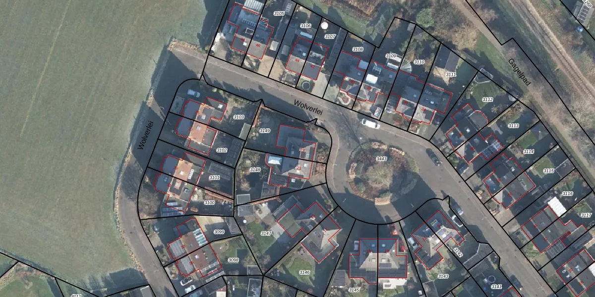 Gebruik de zoekbalk of klik op een perceel voor informatie over de adressen binnen dit perceel.