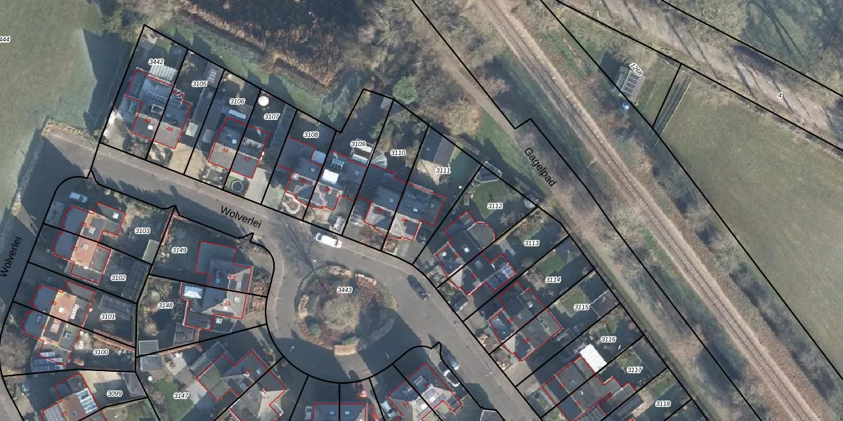 Het perceel waarop Wolverlei 34 staat heeft een oppervlakte van 357 m². Dit is een groot perceel. De perceeloppervlakte wordt geregistreerd door het Kadaster. Gedetailleerde informatie over de maten van dit perceel kunt u vinden in het rapport Kadastrale kaart met maatvoering van Wolverlei 34.
