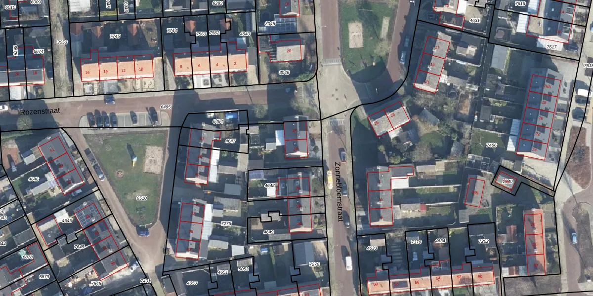 Het perceel waarop Zonnebloemstraat 24 staat heeft een oppervlakte van 1930 m². Dit is een zeer groot perceel. De perceeloppervlakte wordt geregistreerd door het Kadaster. Gedetailleerde informatie over de maten van dit perceel kunt u vinden in het rapport Kadastrale kaart met maatvoering van Zonnebloemstraat 24.