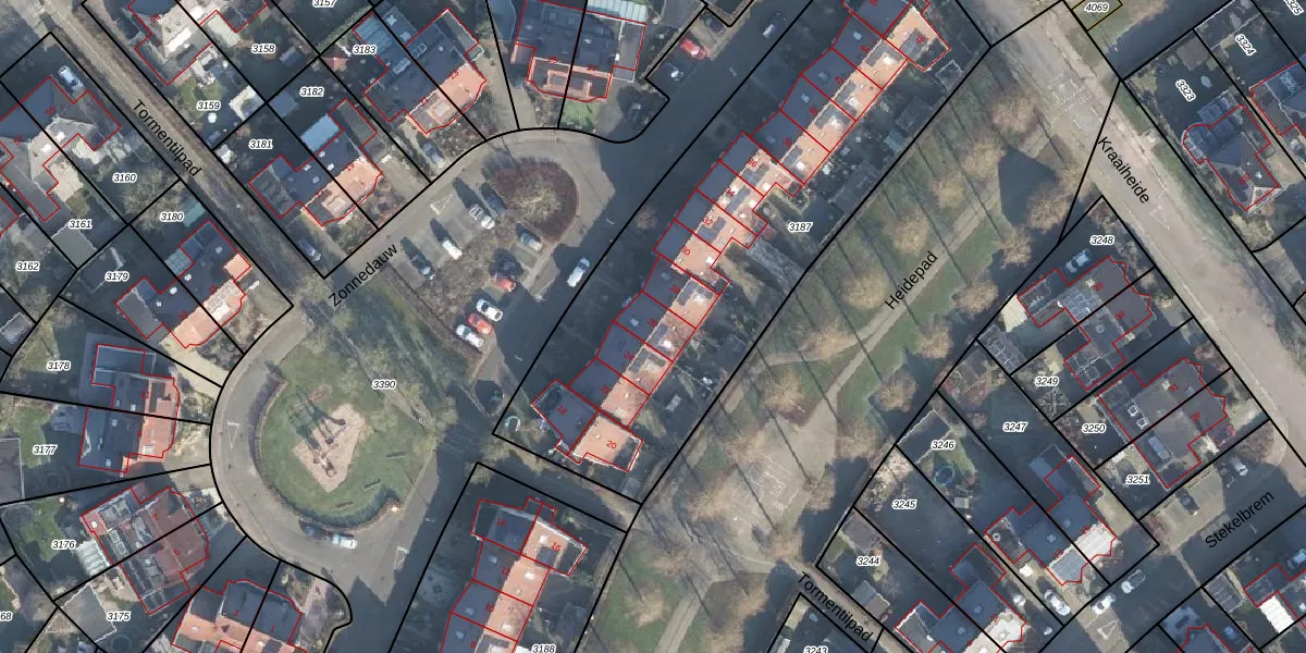 Het perceel waarop Zonnedauw 26 staat heeft een oppervlakte van 2448 m². Dit is een zeer groot perceel. De perceeloppervlakte wordt geregistreerd door het Kadaster. Gedetailleerde informatie over de maten van dit perceel kunt u vinden in het rapport Kadastrale kaart met maatvoering van Zonnedauw 26.