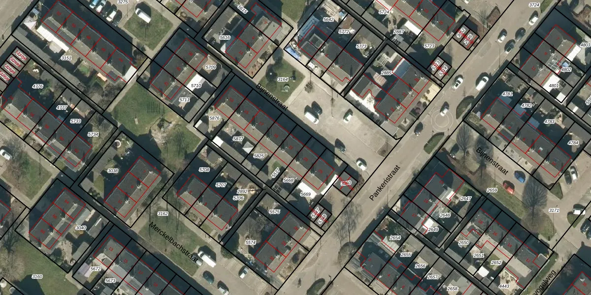 Gebruik de zoekbalk of klik op een perceel voor informatie over de adressen binnen dit perceel.