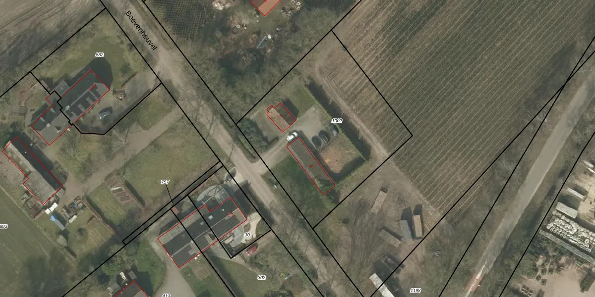 Het perceel waarop Boevenheuvel 3-a staat heeft een oppervlakte van 2020 m². Dit is een zeer groot perceel. De perceeloppervlakte wordt geregistreerd door het Kadaster. Gedetailleerde informatie over de maten van dit perceel kunt u vinden in het rapport Kadastrale kaart met maatvoering van Boevenheuvel 3-a.