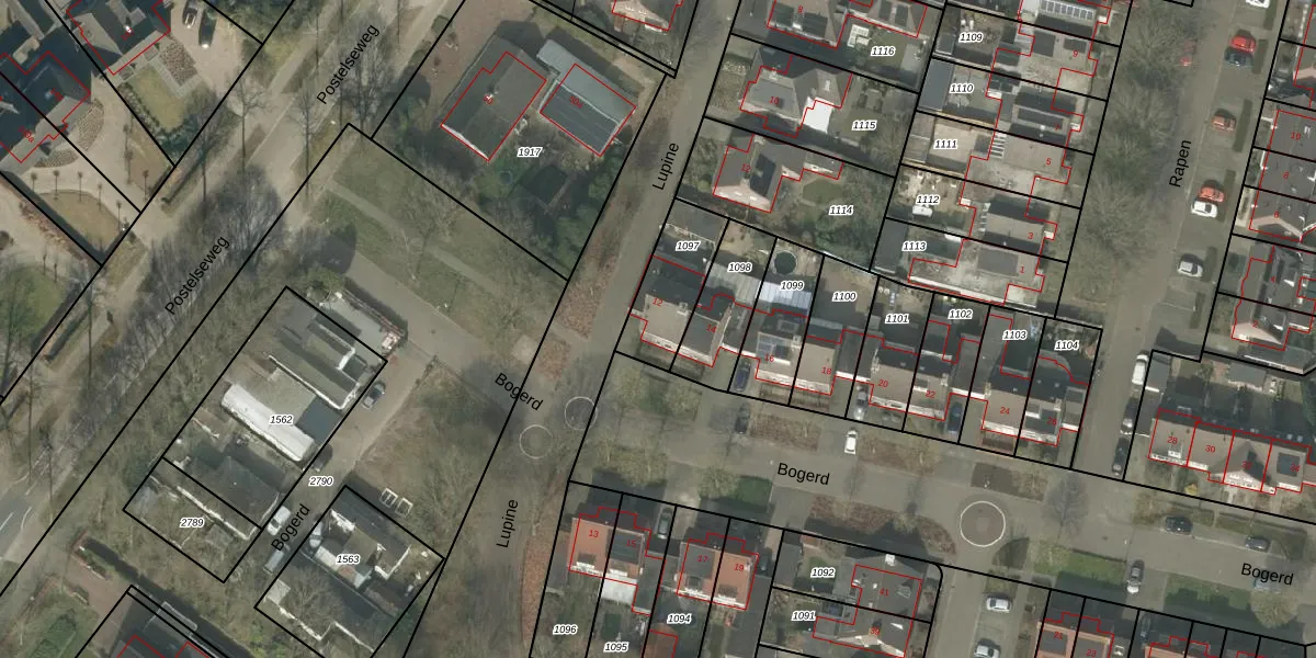 Het perceel waarop Bogerd 12 staat heeft een oppervlakte van 223 m². Dit is een middelgroot perceel. De perceeloppervlakte wordt geregistreerd door het Kadaster. Gedetailleerde informatie over de maten van dit perceel kunt u vinden in het rapport Kadastrale kaart met maatvoering van Bogerd 12.