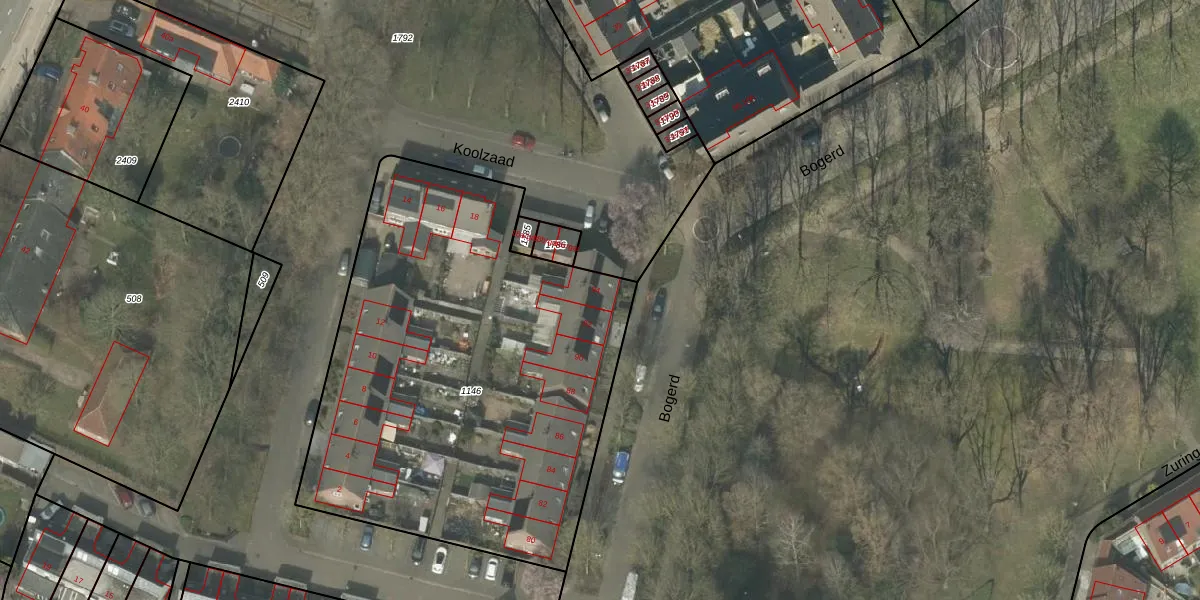 Het perceel waarop Bogerd 94 staat heeft een oppervlakte van 2574 m². Dit is een zeer groot perceel. De perceeloppervlakte wordt geregistreerd door het Kadaster. Gedetailleerde informatie over de maten van dit perceel kunt u vinden in het rapport Kadastrale kaart met maatvoering van Bogerd 94.