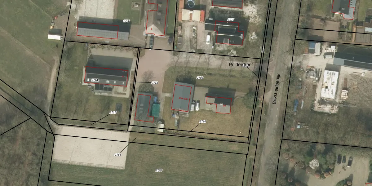 Het perceel waarop Boksheidsedijk 10-a staat heeft een oppervlakte van 2758 m². Dit is een zeer groot perceel. De perceeloppervlakte wordt geregistreerd door het Kadaster. Gedetailleerde informatie over de maten van dit perceel kunt u vinden in het rapport Kadastrale kaart met maatvoering van Boksheidsedijk 10-a.