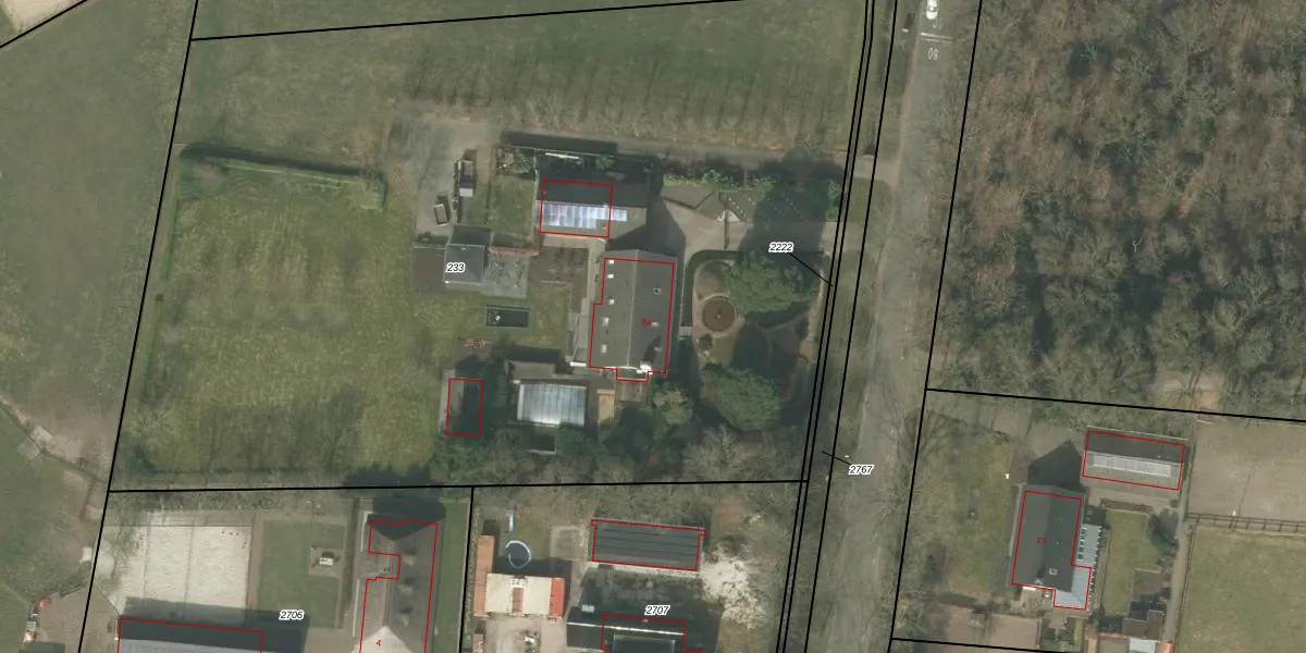 Het adres ligt op het perceel ESL00-M-233, dat zich in de kadastrale gemeente Eersel bevindt. Het perceel is met 7600 m² relatief groot. Het gemiddelde ligt in de kadastrale gemeente Eersel op 4857,34 m². De grootste perceeloppervlakte in de kadastrale gemeente is 1,50 km². De kleinste oppervlakte bedraagt 0 m². Er zijn geen andere adressen aanwezig op het perceel. In de Basisregistratie Kadaster (BRK) werden de grenzen van het perceel geregistreerd op 02-09-2021.