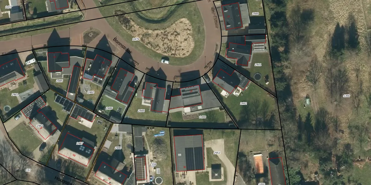 Boonstraat 19 is gelegen op kadastraal perceel ESL00M2488. Deze kadastrale aanduiding is uniek en wordt gebruikt door het Kadaster om eigendomsrechten en andere zakelijke rechten vast te leggen. Het perceel maakt onderdeel uit van de kadastrale gemeente Eersel.