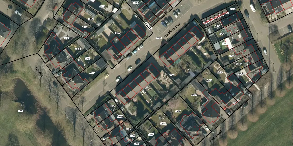 Het perceel waarop Bunderstraat 10 staat heeft een oppervlakte van 2337 m². Dit is een zeer groot perceel. De perceeloppervlakte wordt geregistreerd door het Kadaster. Gedetailleerde informatie over de maten van dit perceel kunt u vinden in het rapport Kadastrale kaart met maatvoering van Bunderstraat 10.