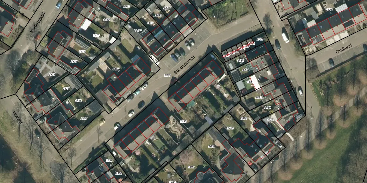 Het perceel waarop Bunderstraat 16 staat heeft een oppervlakte van 2337 m². Dit is een zeer groot perceel. De perceeloppervlakte wordt geregistreerd door het Kadaster. Gedetailleerde informatie over de maten van dit perceel kunt u vinden in het rapport Kadastrale kaart met maatvoering van Bunderstraat 16.