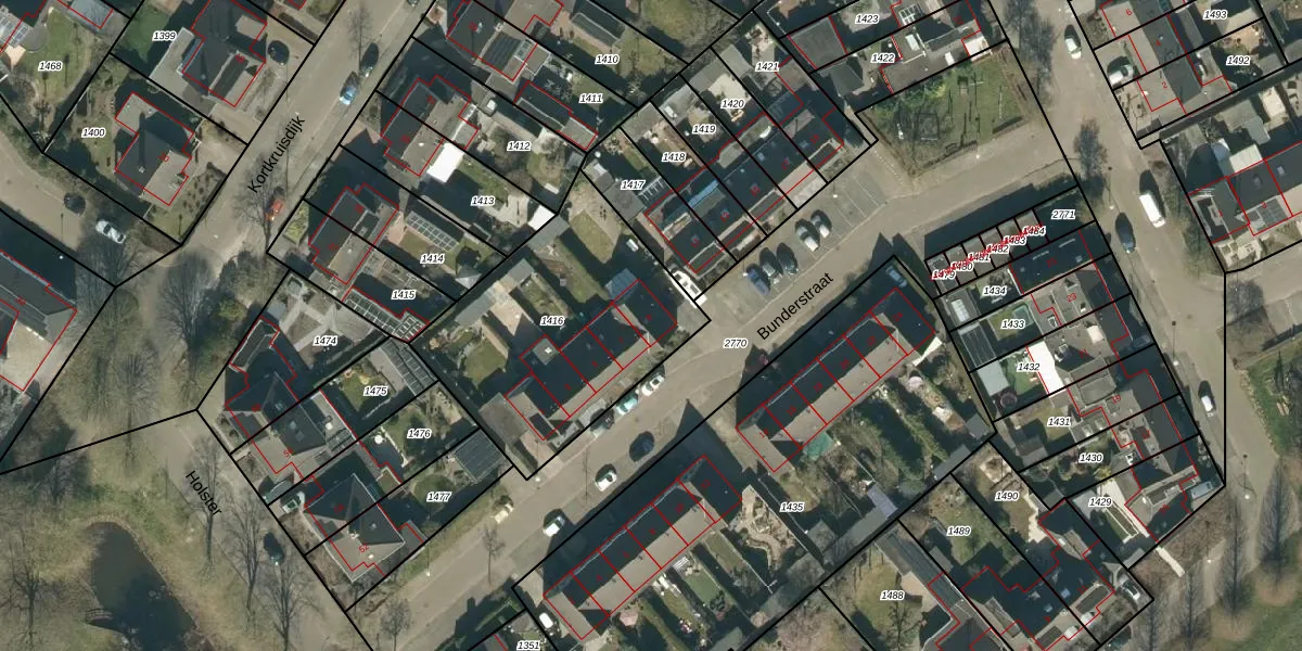 Het perceel waarop Bunderstraat 9 staat heeft een oppervlakte van 1048 m². Dit is een zeer groot perceel. De perceeloppervlakte wordt geregistreerd door het Kadaster. Gedetailleerde informatie over de maten van dit perceel kunt u vinden in het rapport Kadastrale kaart met maatvoering van Bunderstraat 9.