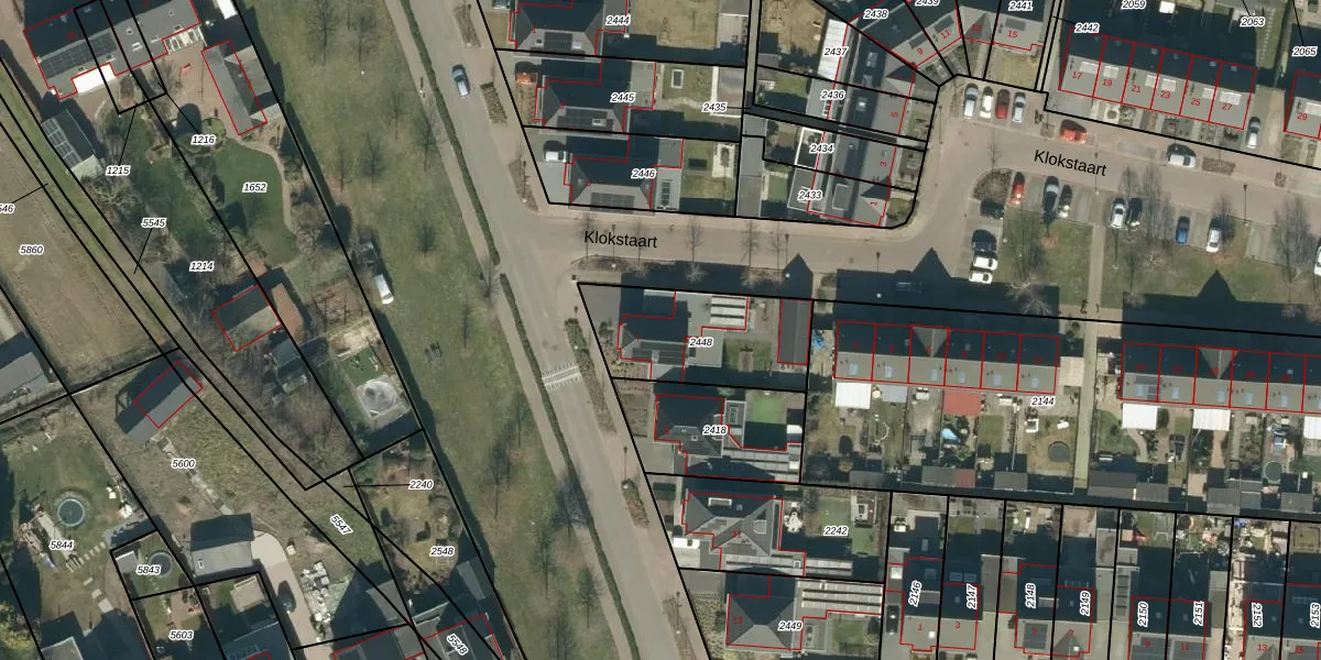 Het perceel waarop het adres ligt is ESL00-M-2448. De afkorting 'ESL00' staat voor kadastrale gemeente Eersel. Het perceel is kleiner dan gemiddeld in Eersel. Het perceel is 458 m² groot, terwijl het gemiddelde ligt op 4855,3 m². De grootste perceeloppervlakte in de kadastrale gemeente is 1,50 km². De kleinste oppervlakte bedraagt 0 m². Dit is het enige adres dat aanwezig is op het perceel. In de Basisregistratie Kadaster (BRK) werden de grenzen van het perceel geregistreerd op 31-08-2016.