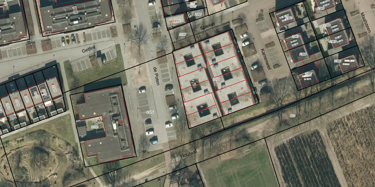 de Poten 79 is gelegen op kadastraal perceel ESL00M2103. Deze kadastrale aanduiding is uniek en wordt gebruikt door het Kadaster om eigendomsrechten en andere zakelijke rechten vast te leggen. Het perceel maakt onderdeel uit van de kadastrale gemeente Eersel.