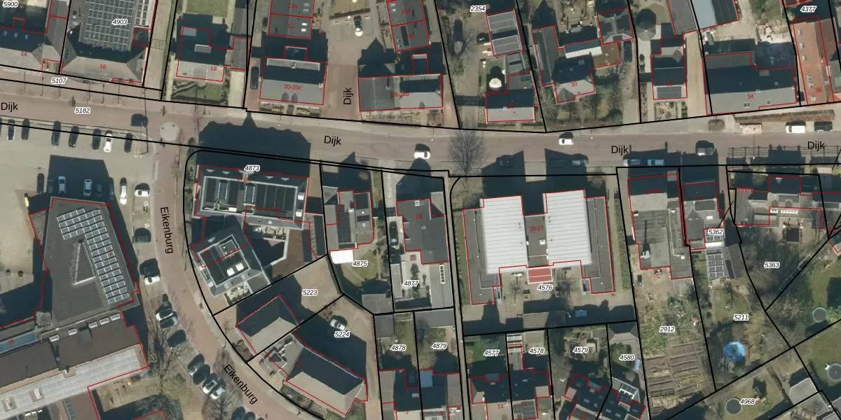 Dijk 23 is gelegen op kadastraal perceel ESL00F4877. Deze kadastrale aanduiding is uniek en wordt gebruikt door het Kadaster om eigendomsrechten en andere zakelijke rechten vast te leggen. Het perceel maakt onderdeel uit van de kadastrale gemeente Eersel.