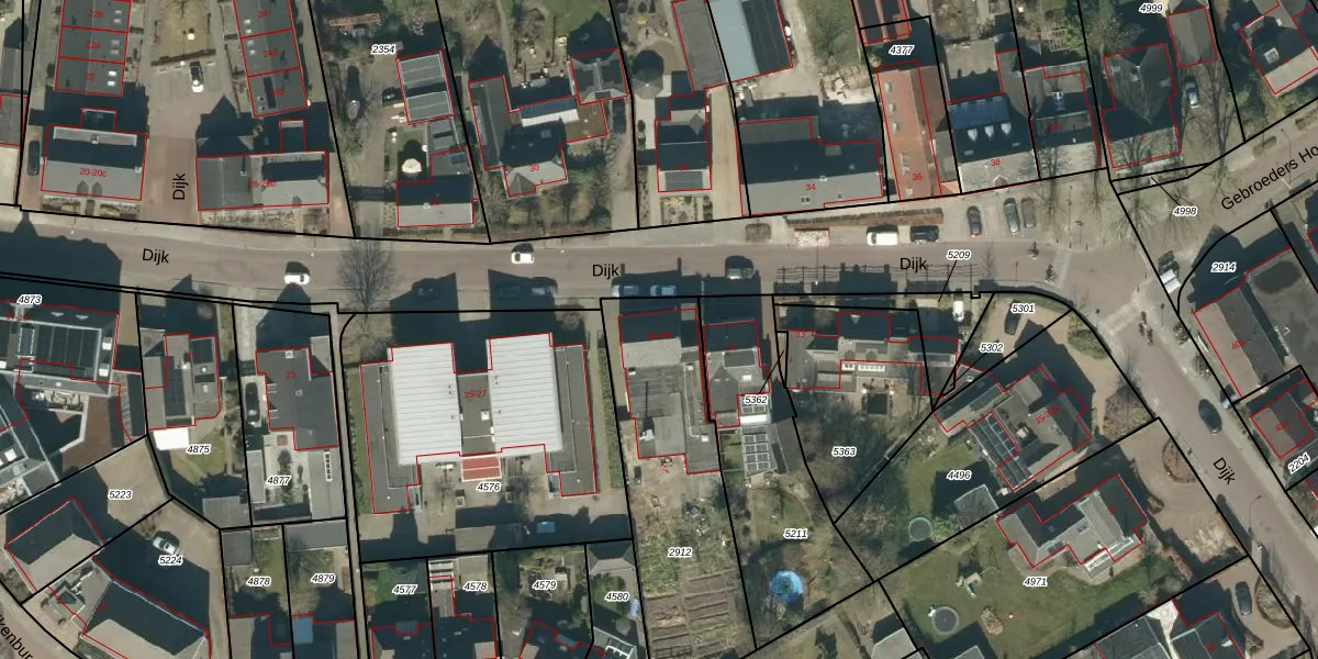 Het perceel waarop Dijk 29 staat heeft een oppervlakte van 865 m². Dit is een groot perceel. De perceeloppervlakte wordt geregistreerd door het Kadaster. Gedetailleerde informatie over de maten van dit perceel kunt u vinden in het rapport Kadastrale kaart met maatvoering van Dijk 29.