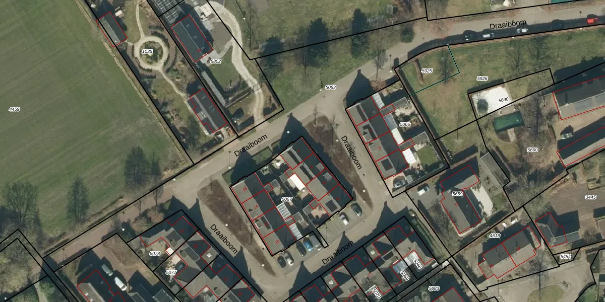 Het perceel waarop Draaiboom 2 staat heeft een oppervlakte van 853 m². Dit is een groot perceel. De perceeloppervlakte wordt geregistreerd door het Kadaster. Gedetailleerde informatie over de maten van dit perceel kunt u vinden in het rapport Kadastrale kaart met maatvoering van Draaiboom 2.
