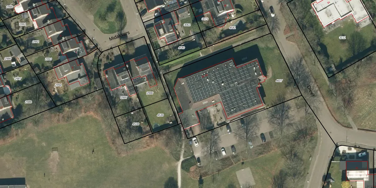 Het perceel waarop Dreef 33 staat heeft een oppervlakte van 2318 m². Dit is een zeer groot perceel. De perceeloppervlakte wordt geregistreerd door het Kadaster. Gedetailleerde informatie over de maten van dit perceel kunt u vinden in het rapport Kadastrale kaart met maatvoering van Dreef 33.