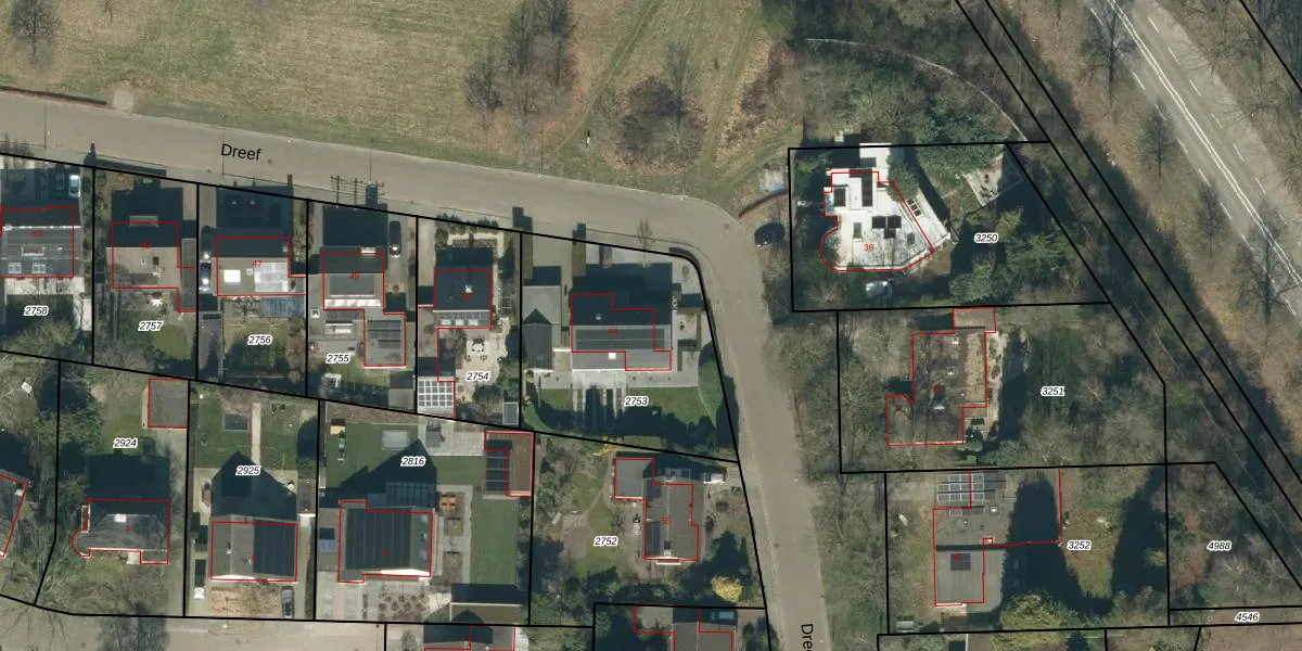 Dreef 53 is gelegen op kadastraal perceel ESL00F2753. Deze kadastrale aanduiding is uniek en wordt gebruikt door het Kadaster om eigendomsrechten en andere zakelijke rechten vast te leggen. Het perceel maakt onderdeel uit van de kadastrale gemeente Eersel.
