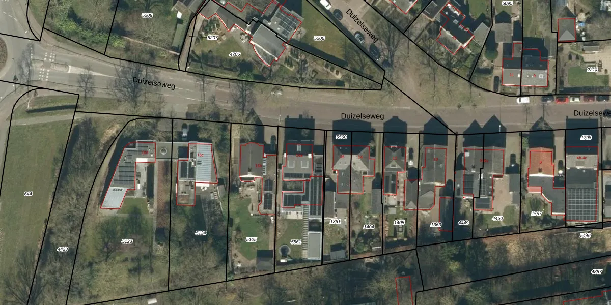 Het perceel waarop Duizelseweg 16-a staat heeft een oppervlakte van 712 m². Dit is een groot perceel. De perceeloppervlakte wordt geregistreerd door het Kadaster. Gedetailleerde informatie over de maten van dit perceel kunt u vinden in het rapport Kadastrale kaart met maatvoering van Duizelseweg 16-a.