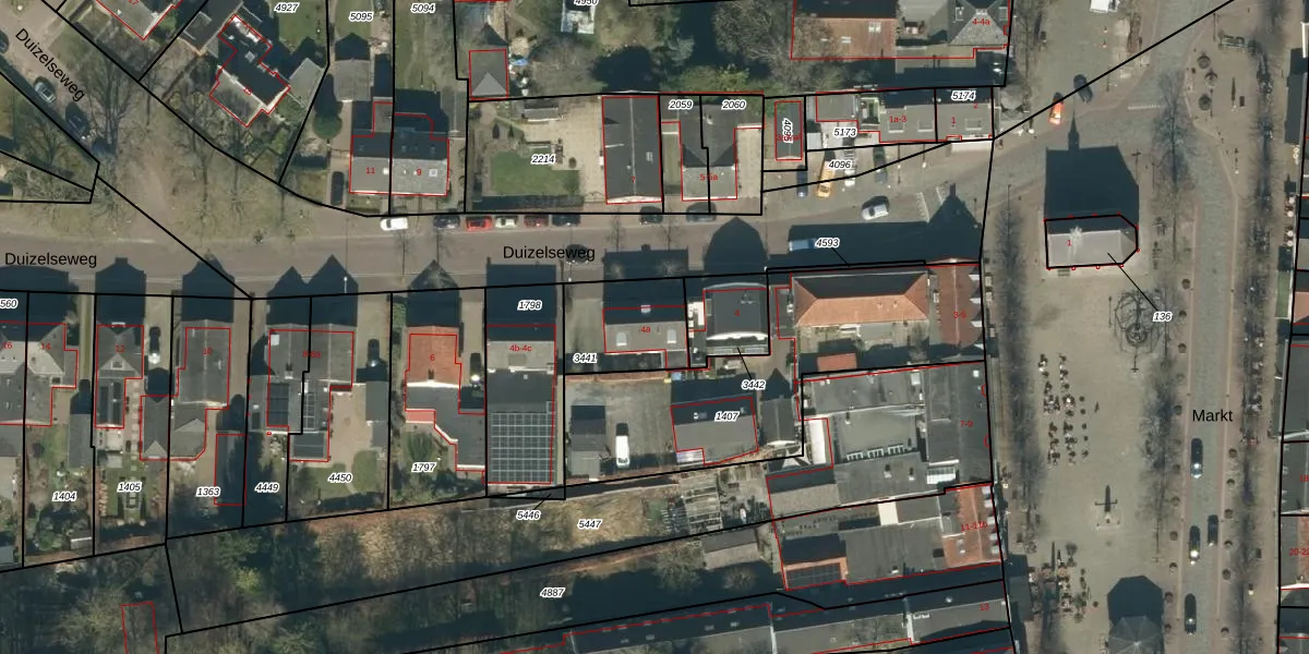 Gebruik de zoekbalk of klik op een perceel voor informatie over de adressen binnen dit perceel.