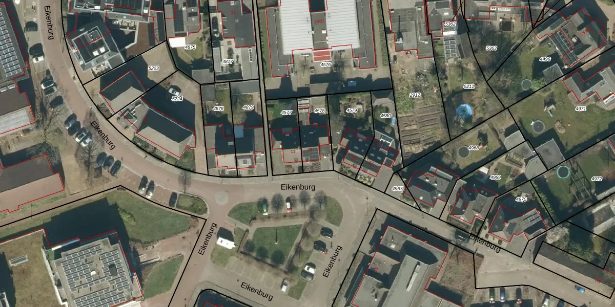 Het perceel waarop Eikenburg 13 staat heeft een oppervlakte van 245 m². Dit is een middelgroot perceel. De perceeloppervlakte wordt geregistreerd door het Kadaster. Gedetailleerde informatie over de maten van dit perceel kunt u vinden in het rapport Kadastrale kaart met maatvoering van Eikenburg 13.