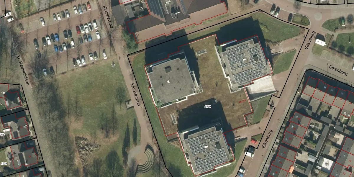 Het perceel waarop Eikenburg 146 staat heeft een oppervlakte van 6332 m². Dit is een zeer groot perceel. De perceeloppervlakte wordt geregistreerd door het Kadaster. Gedetailleerde informatie over de maten van dit perceel kunt u vinden in het rapport Kadastrale kaart met maatvoering van Eikenburg 146.