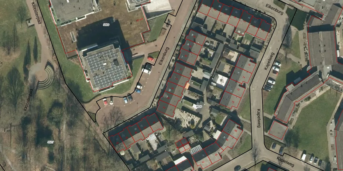 Eikenburg 36 is gelegen op kadastraal perceel ESL00F4616. Deze kadastrale aanduiding is uniek en wordt gebruikt door het Kadaster om eigendomsrechten en andere zakelijke rechten vast te leggen. Het perceel maakt onderdeel uit van de kadastrale gemeente Eersel.
