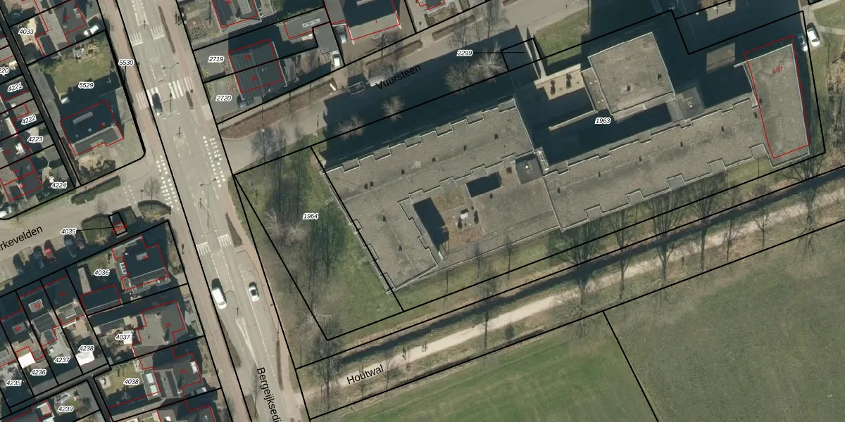 Het perceel waarop Gebint 1-s staat heeft een oppervlakte van 4763 m². Dit is een zeer groot perceel. De perceeloppervlakte wordt geregistreerd door het Kadaster. Gedetailleerde informatie over de maten van dit perceel kunt u vinden in het rapport Kadastrale kaart met maatvoering van Gebint 1-s.