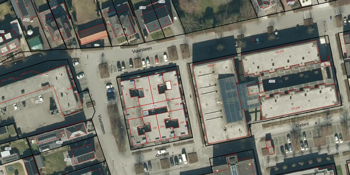 Het perceel waarop Gebint 148 staat heeft een oppervlakte van 1510 m². Dit is een zeer groot perceel. De perceeloppervlakte wordt geregistreerd door het Kadaster. Gedetailleerde informatie over de maten van dit perceel kunt u vinden in het rapport Kadastrale kaart met maatvoering van Gebint 148.