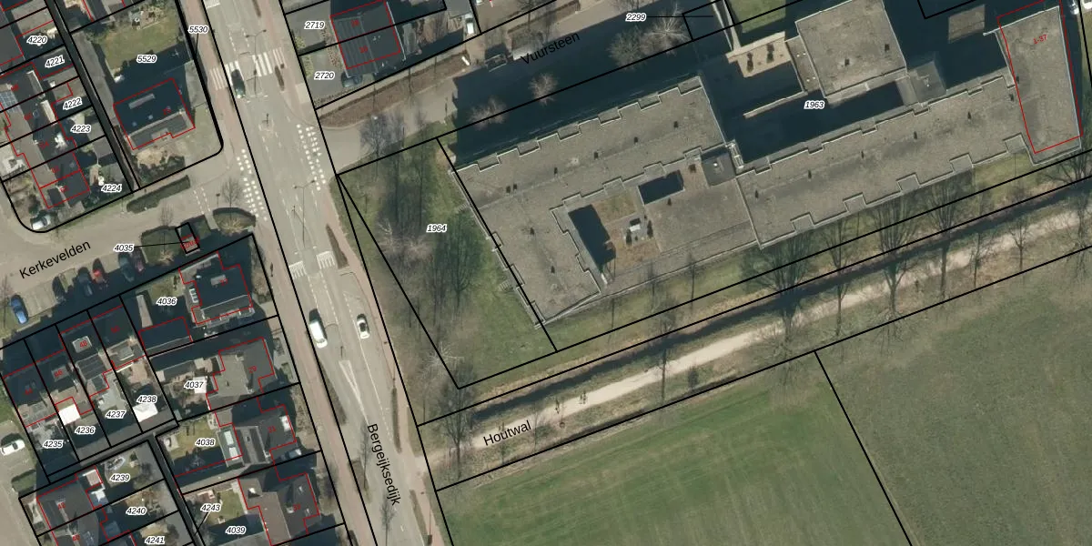 Het perceel waarop Gebint 26 staat heeft een oppervlakte van 4763 m². Dit is een zeer groot perceel. De perceeloppervlakte wordt geregistreerd door het Kadaster. Gedetailleerde informatie over de maten van dit perceel kunt u vinden in het rapport Kadastrale kaart met maatvoering van Gebint 26.