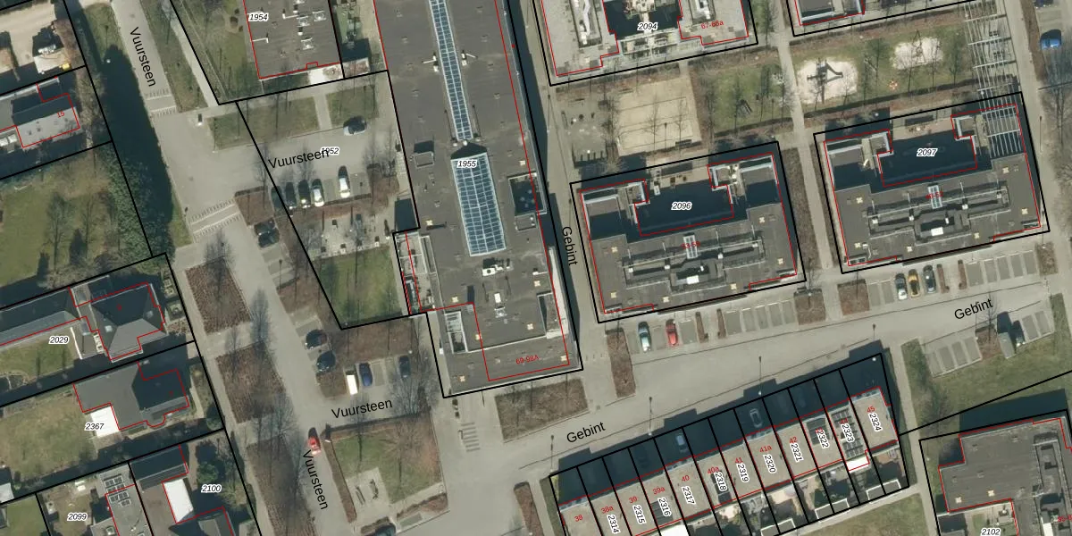 Het perceel waarop Gebint 90 staat heeft een oppervlakte van 2720 m². Dit is een zeer groot perceel. De perceeloppervlakte wordt geregistreerd door het Kadaster. Gedetailleerde informatie over de maten van dit perceel kunt u vinden in het rapport Kadastrale kaart met maatvoering van Gebint 90.
