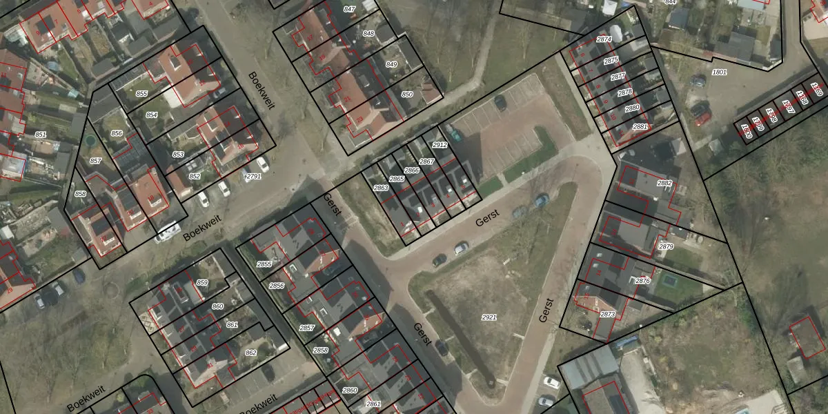 Het perceel waarop Gerst 2 staat heeft een oppervlakte van 88 m². Dit is een klein perceel. De perceeloppervlakte wordt geregistreerd door het Kadaster. Gedetailleerde informatie over de maten van dit perceel kunt u vinden in het rapport Kadastrale kaart met maatvoering van Gerst 2.