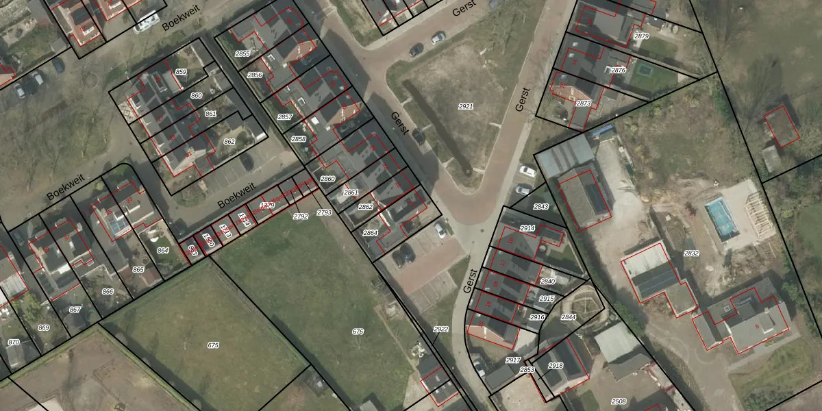 Het perceel waarop Gerst 21 staat heeft een oppervlakte van 187 m². Dit is een middelgroot perceel. De perceeloppervlakte wordt geregistreerd door het Kadaster. Gedetailleerde informatie over de maten van dit perceel kunt u vinden in het rapport Kadastrale kaart met maatvoering van Gerst 21.