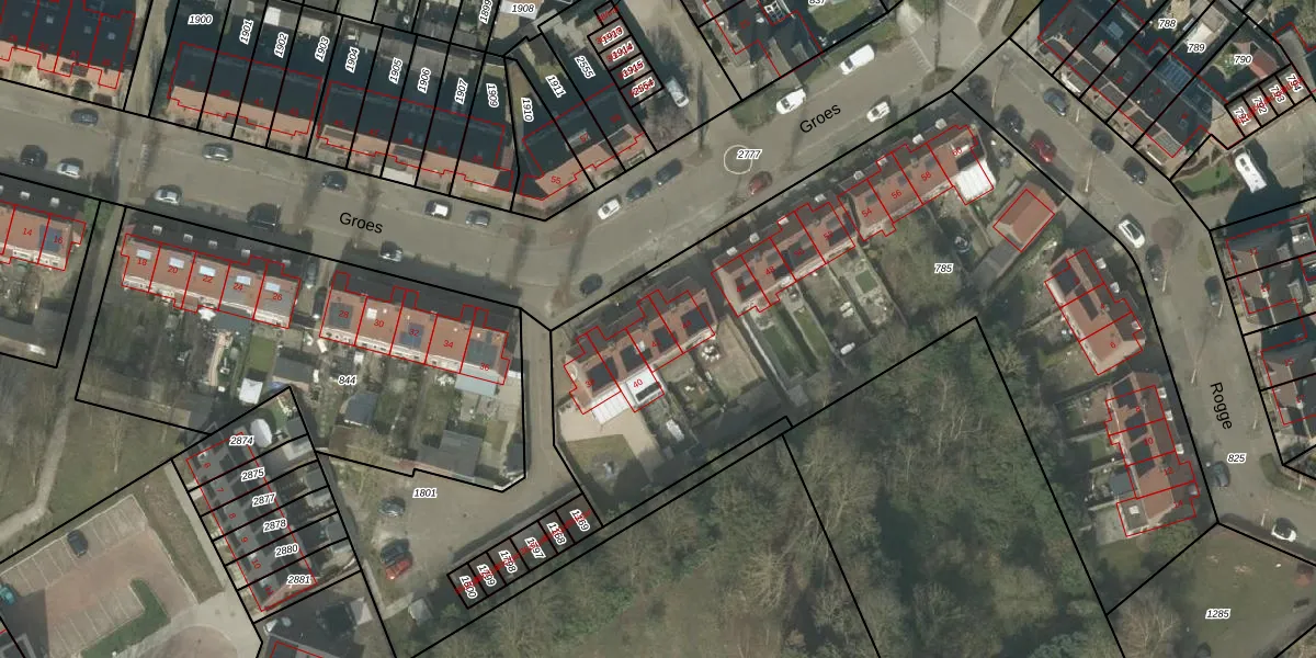 Het perceel waarop Groes 42 staat heeft een oppervlakte van 3655 m². Dit is een zeer groot perceel. De perceeloppervlakte wordt geregistreerd door het Kadaster. Gedetailleerde informatie over de maten van dit perceel kunt u vinden in het rapport Kadastrale kaart met maatvoering van Groes 42.