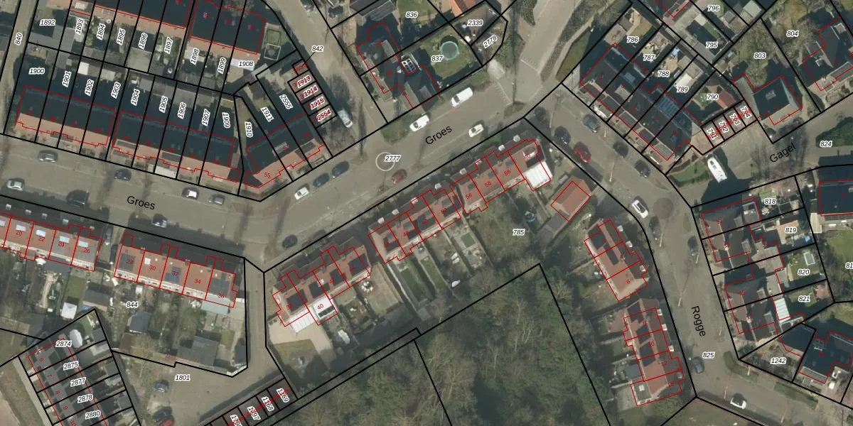 Het perceel waarop Groes 50 staat heeft een oppervlakte van 3655 m². Dit is een zeer groot perceel. De perceeloppervlakte wordt geregistreerd door het Kadaster. Gedetailleerde informatie over de maten van dit perceel kunt u vinden in het rapport Kadastrale kaart met maatvoering van Groes 50.