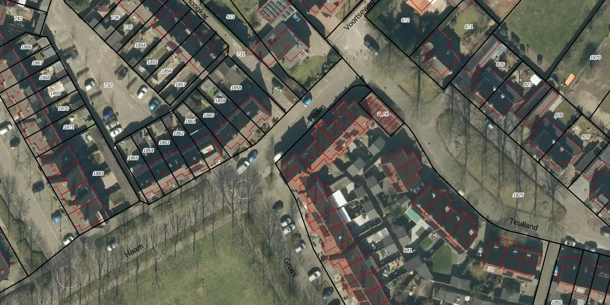 Het perceel waarop Haam 9 staat heeft een oppervlakte van 4587 m². Dit is een zeer groot perceel. De perceeloppervlakte wordt geregistreerd door het Kadaster. Gedetailleerde informatie over de maten van dit perceel kunt u vinden in het rapport Kadastrale kaart met maatvoering van Haam 9.