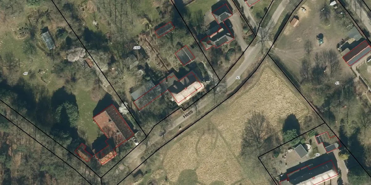 Het perceel waarop Hees 22 staat heeft een oppervlakte van 5083 m². Dit is een zeer groot perceel. De perceeloppervlakte wordt geregistreerd door het Kadaster. Gedetailleerde informatie over de maten van dit perceel kunt u vinden in het rapport Kadastrale kaart met maatvoering van Hees 22.