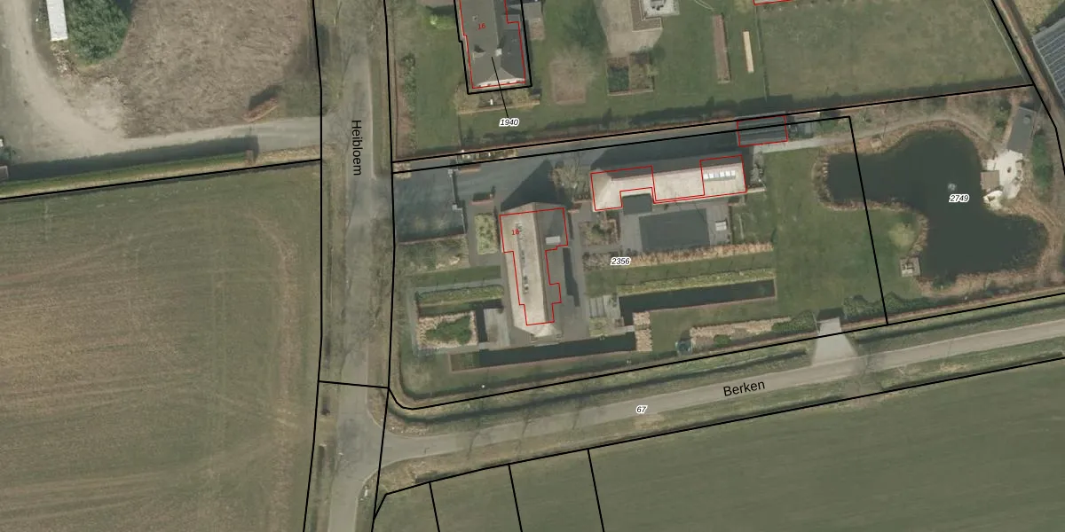 Het perceel waarop Heibloem 18 staat heeft een oppervlakte van 3810 m². Dit is een zeer groot perceel. De perceeloppervlakte wordt geregistreerd door het Kadaster. Gedetailleerde informatie over de maten van dit perceel kunt u vinden in het rapport Kadastrale kaart met maatvoering van Heibloem 18.