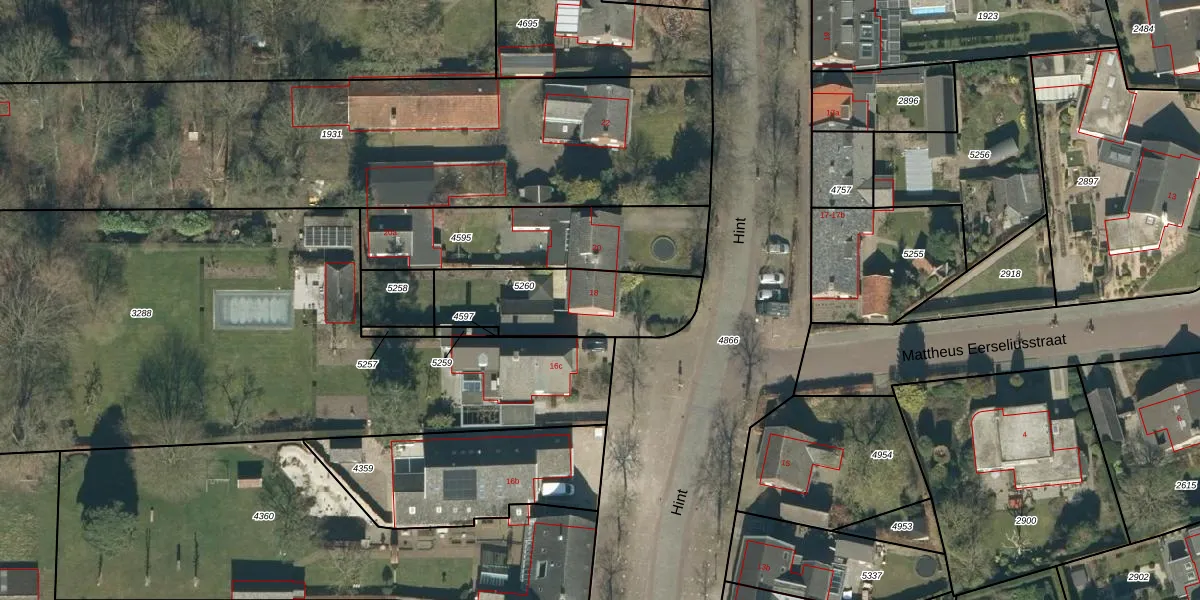 Het perceel waarop Hint 18 staat heeft een oppervlakte van 459 m². Dit is een groot perceel. De perceeloppervlakte wordt geregistreerd door het Kadaster. Gedetailleerde informatie over de maten van dit perceel kunt u vinden in het rapport Kadastrale kaart met maatvoering van Hint 18.