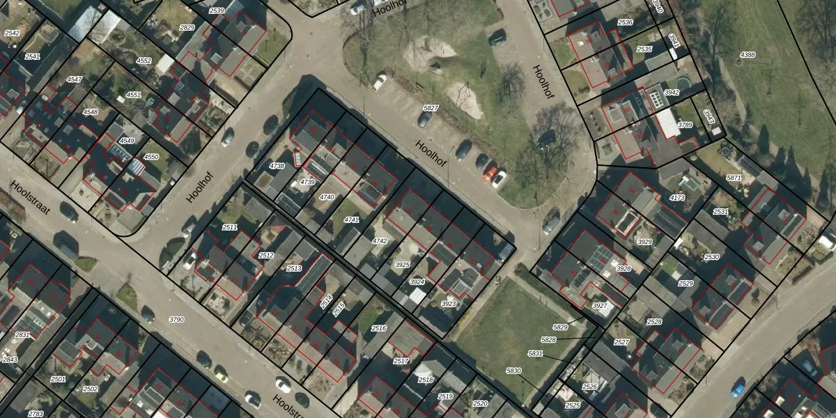 Gebruik de zoekbalk of klik op een perceel voor informatie over de adressen binnen dit perceel.