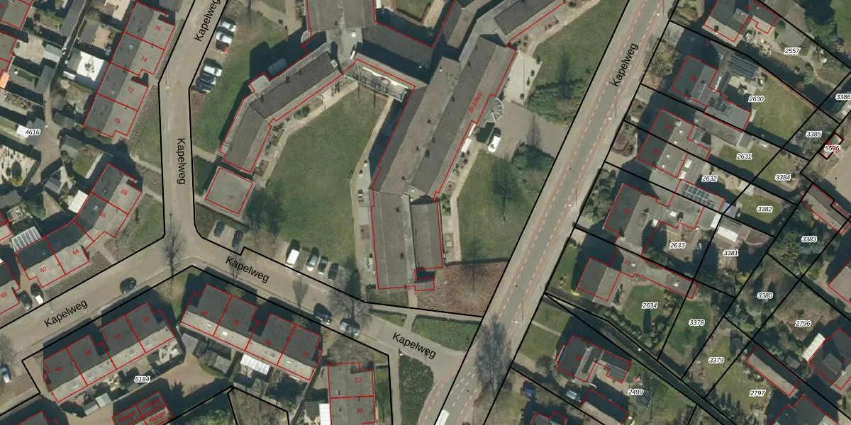Het perceel waarop Kapelweg 20-a-3 staat heeft een oppervlakte van 9858 m². Dit is een zeer groot perceel. De perceeloppervlakte wordt geregistreerd door het Kadaster. Gedetailleerde informatie over de maten van dit perceel kunt u vinden in het rapport Kadastrale kaart met maatvoering van Kapelweg 20-a-3.