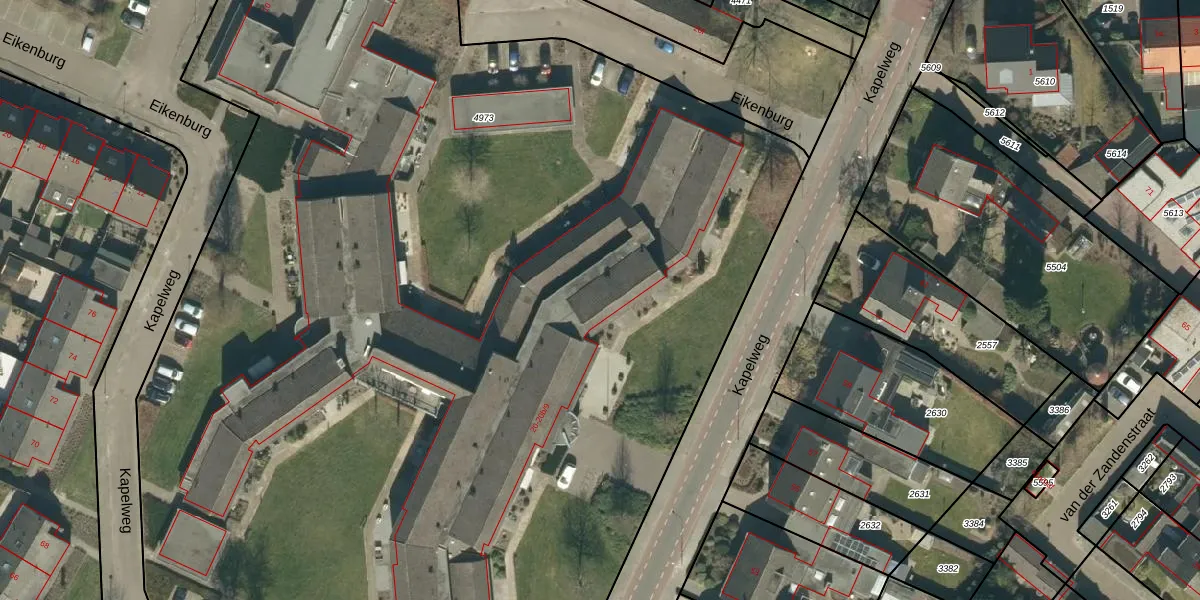 Kapelweg 20-a-26 is gelegen op kadastraal perceel ESL00F4973. Deze kadastrale aanduiding is uniek en wordt gebruikt door het Kadaster om eigendomsrechten en andere zakelijke rechten vast te leggen. Het perceel maakt onderdeel uit van de kadastrale gemeente Eersel.
