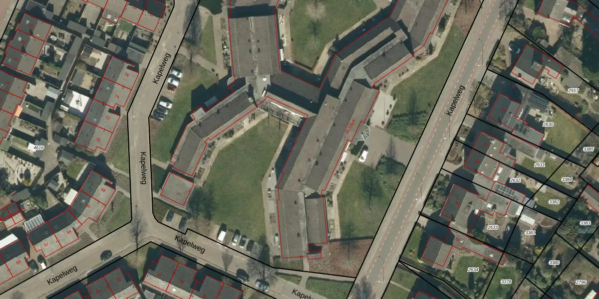 Het perceel waarop Kapelweg 20-b-7 staat heeft een oppervlakte van 9858 m². Dit is een zeer groot perceel. De perceeloppervlakte wordt geregistreerd door het Kadaster. Gedetailleerde informatie over de maten van dit perceel kunt u vinden in het rapport Kadastrale kaart met maatvoering van Kapelweg 20-b-7.