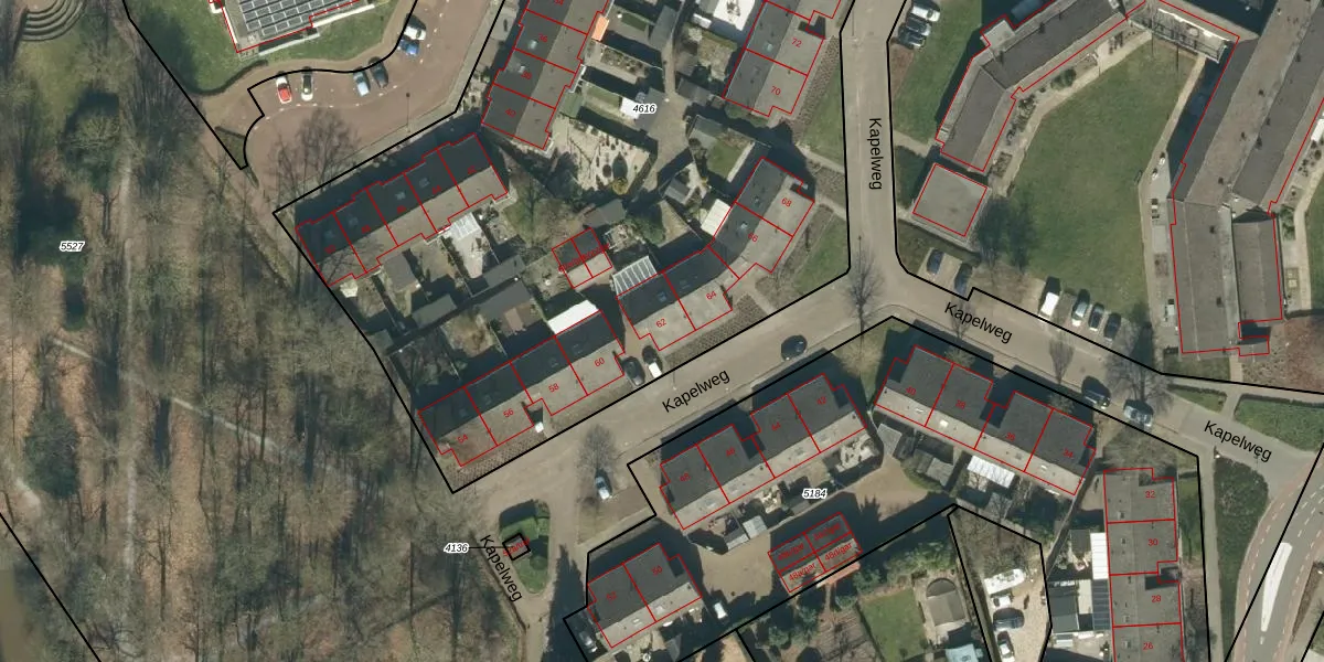 Het perceel waarop Kapelweg 62 staat heeft een oppervlakte van 6465 m². Dit is een zeer groot perceel. De perceeloppervlakte wordt geregistreerd door het Kadaster. Gedetailleerde informatie over de maten van dit perceel kunt u vinden in het rapport Kadastrale kaart met maatvoering van Kapelweg 62.