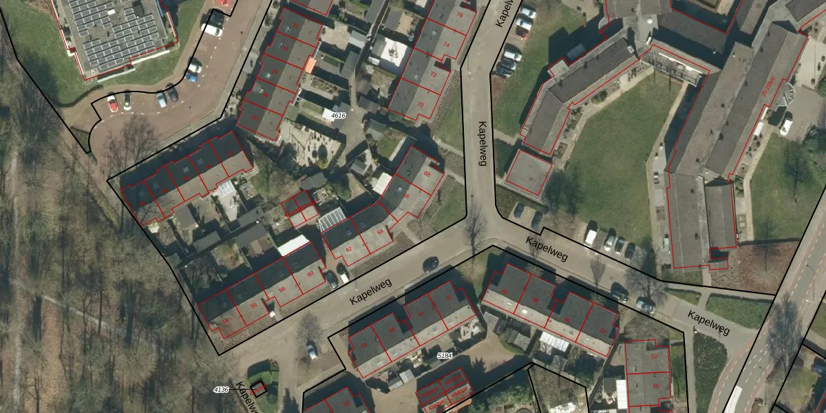 Het perceel waarop Kapelweg 66 staat heeft een oppervlakte van 6465 m². Dit is een zeer groot perceel. De perceeloppervlakte wordt geregistreerd door het Kadaster. Gedetailleerde informatie over de maten van dit perceel kunt u vinden in het rapport Kadastrale kaart met maatvoering van Kapelweg 66.