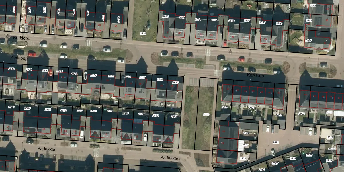 Het perceel waarop Kerkloop 28 staat heeft een oppervlakte van 197 m². Dit is een middelgroot perceel. De perceeloppervlakte wordt geregistreerd door het Kadaster. Gedetailleerde informatie over de maten van dit perceel kunt u vinden in het rapport Kadastrale kaart met maatvoering van Kerkloop 28.