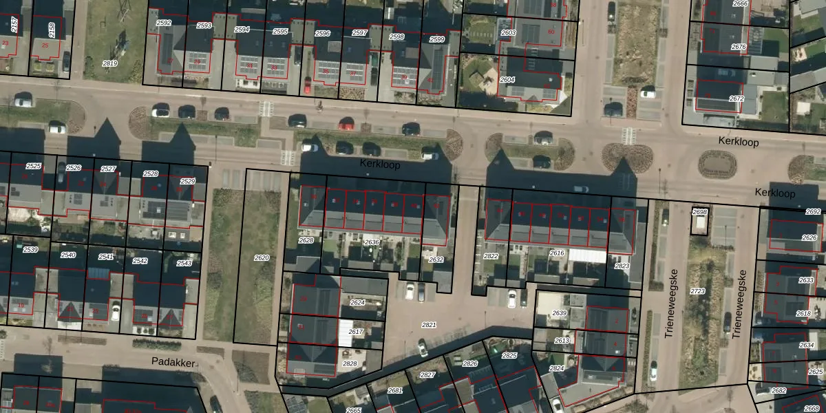 Het perceel waarop Kerkloop 40 staat heeft een oppervlakte van 550 m². Dit is een groot perceel. De perceeloppervlakte wordt geregistreerd door het Kadaster. Gedetailleerde informatie over de maten van dit perceel kunt u vinden in het rapport Kadastrale kaart met maatvoering van Kerkloop 40.