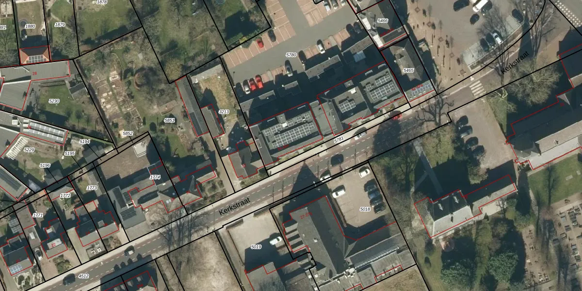 Het perceel waarop Kerkstraat 34-a staat heeft een oppervlakte van 2390 m². Dit is een zeer groot perceel. De perceeloppervlakte wordt geregistreerd door het Kadaster. Gedetailleerde informatie over de maten van dit perceel kunt u vinden in het rapport Kadastrale kaart met maatvoering van Kerkstraat 34-a.