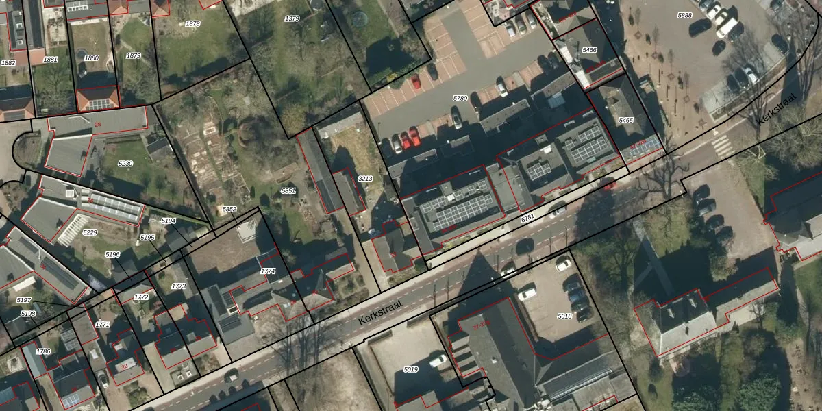 Het perceel waarop Kerkstraat 38 staat heeft een oppervlakte van 2390 m². Dit is een zeer groot perceel. De perceeloppervlakte wordt geregistreerd door het Kadaster. Gedetailleerde informatie over de maten van dit perceel kunt u vinden in het rapport Kadastrale kaart met maatvoering van Kerkstraat 38.